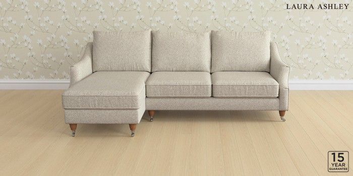 6.12.1 Buy Beverley by Laura Ashley Medium Sofa Chaise - Left Hand Tichwell Stone Natural Low Chrome Castor - Teak from the Next UK online shop Click here to use our accessible website