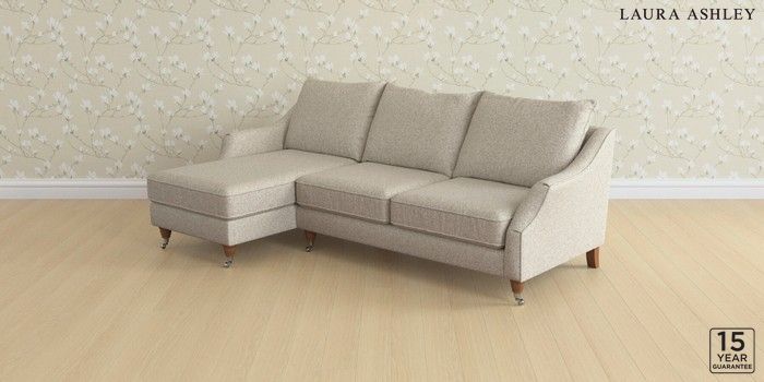 7.3.1 Buy Beverley by Laura Ashley Medium Sofa Chaise - Left Hand Tichwell Stone Natural Low Chrome Castor - Teak from the Next UK online shop Click here to use our accessible website