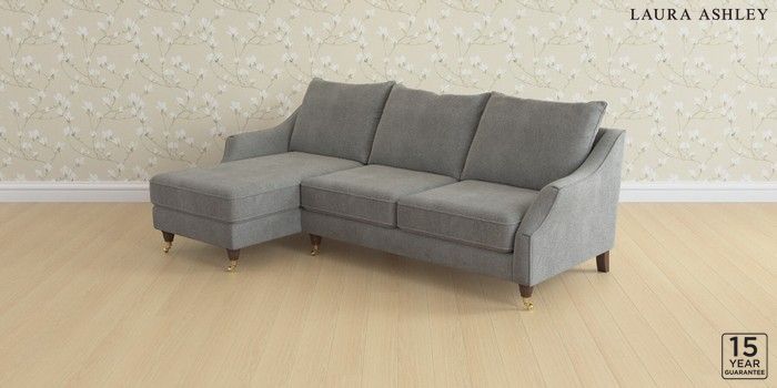 6.12.1 Buy Beverley by Laura Ashley Medium Sofa Chaise - Left Hand Wooton Dark Steel Grey Low Brass Castor - Chestnut from the Next UK online shop Click here to use our accessible website
