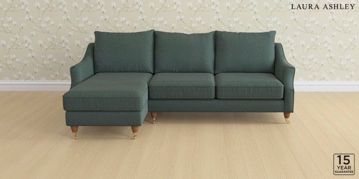 6.12.1 Buy Beverley by Laura Ashley Medium Sofa Chaise - Left Hand Wooton Forest Green Low Brass Castor - Teak from the Next UK online shop Click here to use our accessible website