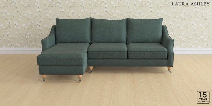 6.12.1 Buy Beverley by Laura Ashley Medium Sofa Chaise - Left Hand Wooton Forest Green Low Chrome Castor - Light Oak from the Next UK online shop Click here to use our accessible website
