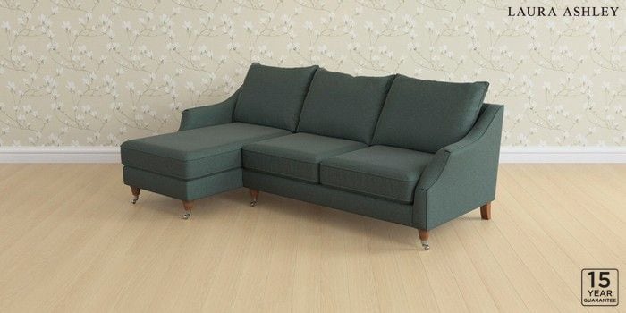 7.2.10 Buy Beverley by Laura Ashley Medium Sofa Chaise - Left Hand Wooton Forest Green Low Chrome Castor - Teak from the Next UK online shop Click here to use our accessible website