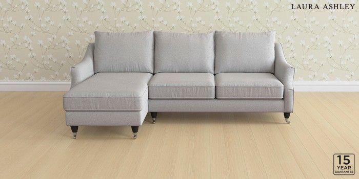 6.12.1 Buy Beverley by Laura Ashley Medium Sofa Chaise - Left Hand Wooton Pale Steel Grey Low Chrome Castor - Black from the Next UK online shop Click here to use our accessible website