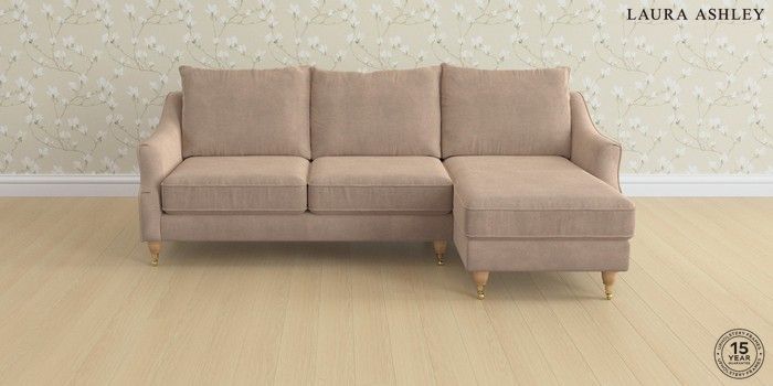 6.12.1 Buy Beverley by Laura Ashley Medium Sofa Chaise - Right Hand Ailsworth Mink Natural Low Brass Castor - Light Oak from the Next UK online shop Click here to use our accessible website