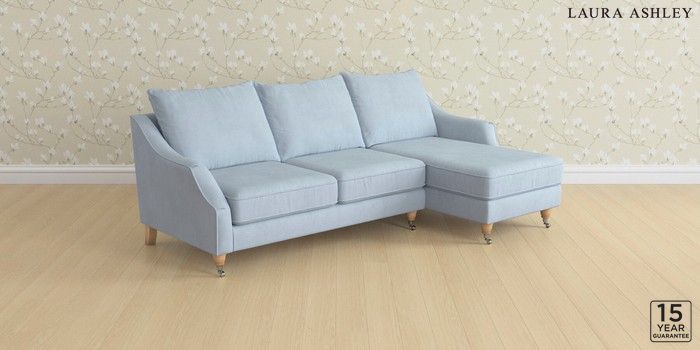 6.12.1 Buy Beverley by Laura Ashley Medium Sofa Chaise - Right Hand Ailsworth Newport Blue Low Chrome Castor - Light Oak from the Next UK online shop Click here to use our accessible website