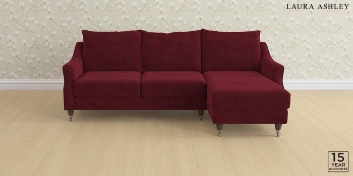6.12.1 Buy Beverley by Laura Ashley Medium Sofa Chaise - Right Hand Alwyn Velvet Burgundy Red Low Chrome Castor - Chestnut from the Next UK online shop Click here to use our accessible website