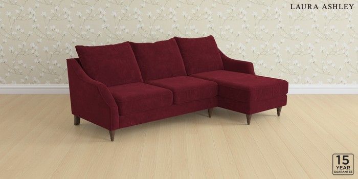 7.3.1 Buy Beverley by Laura Ashley Medium Sofa Chaise - Right Hand Alwyn Velvet Burgundy Red Low Turned - Chestnut from the Next UK online shop Click here to use our accessible website