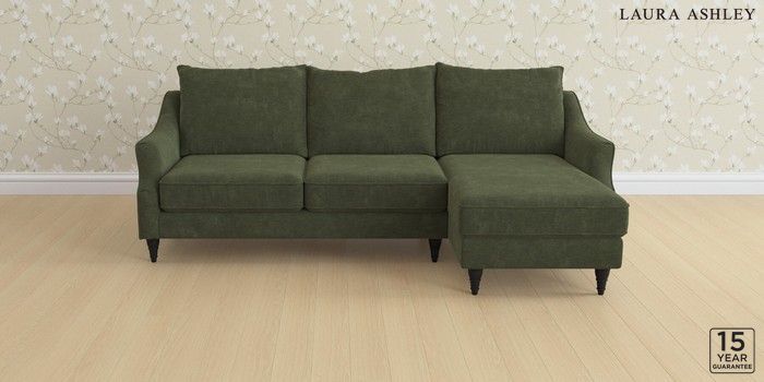 6.12.1 Buy Beverley by Laura Ashley Medium Sofa Chaise - Right Hand Alwyn Velvet Ivy Green Low Turned - Black from the Next UK online shop Click here to use our accessible website