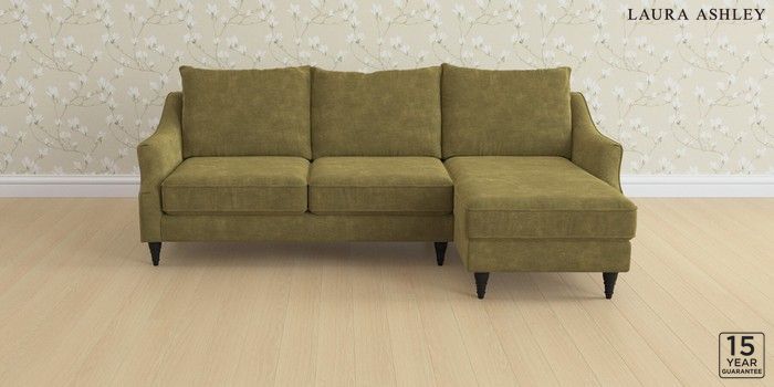 6.12.1 Buy Beverley by Laura Ashley Medium Sofa Chaise - Right Hand Alwyn Velvet Olive Green Low Turned - Black from the Next UK online shop Click here to use our accessible website