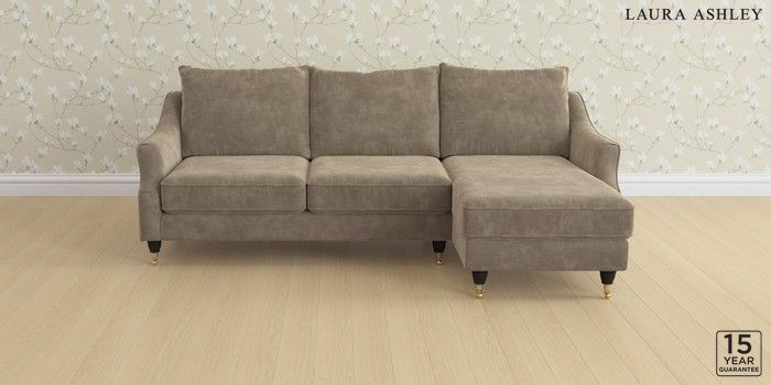 6.12.1 Buy Beverley by Laura Ashley Medium Sofa Chaise - Right Hand Alwyn Velvet Truffle Natural Low Brass Castor - Black from the Next UK online shop Click here to use our accessible website