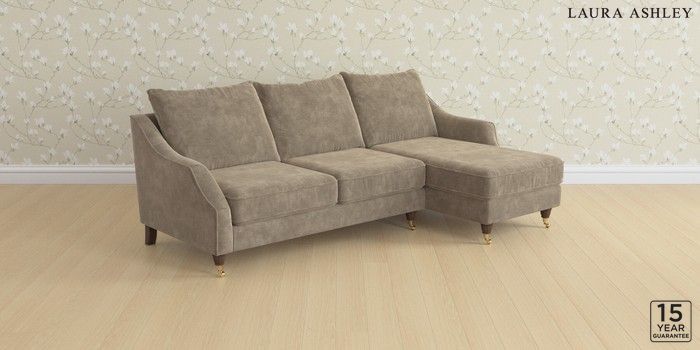 7.3.1 Buy Beverley by Laura Ashley Medium Sofa Chaise - Right Hand Alwyn Velvet Truffle Natural Low Brass Castor - Chestnut from the Next UK online shop Click here to use our accessible website