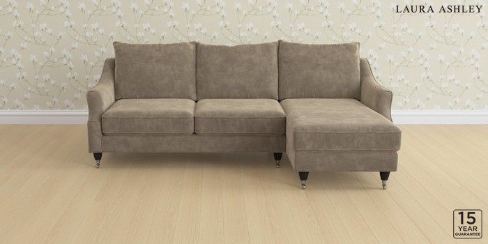 6.12.1 Buy Beverley by Laura Ashley Medium Sofa Chaise - Right Hand Alwyn Velvet Truffle Natural Low Chrome Castor - Black from the Next UK online shop Click here to use our accessible website