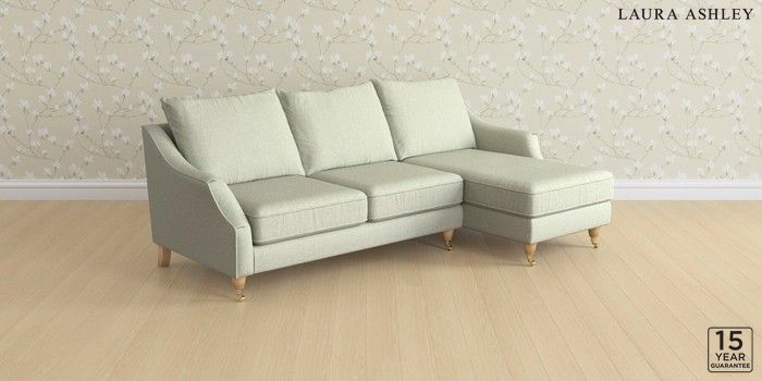 6.12.1 Buy Beverley by Laura Ashley Medium Sofa Chaise - Right Hand Anneliese Sage Green Low Brass Castor - Light Oak from the Next UK online shop Click here to use our accessible website