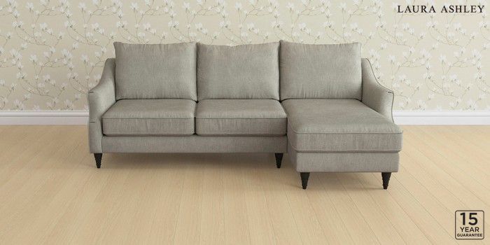6.12.1 Buy Beverley by Laura Ashley Medium Sofa Chaise - Right Hand Bainton Pale Steel Grey Low Turned - Black from the Next UK online shop Click here to use our accessible website
