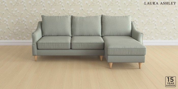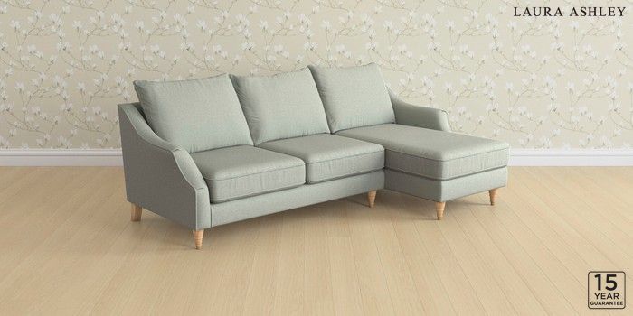 6.12.1 Buy Beverley by Laura Ashley Medium Sofa Chaise - Right Hand Bainton Sage Green Low Turned - Light Oak from the Next UK online shop Click here to use our accessible website