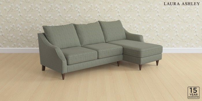 7.2.10 Buy Beverley by Laura Ashley Medium Sofa Chaise - Right Hand Birchgrove Check Olive Green Low Turned - Chestnut from the Next UK online shop Click here to use our accessible website