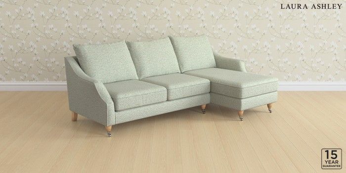 6.12.1 Buy Beverley by Laura Ashley Medium Sofa Chaise - Right Hand Borwick Newport Blue Low Chrome Castor - Light Oak from the Next UK online shop Click here to use our accessible website