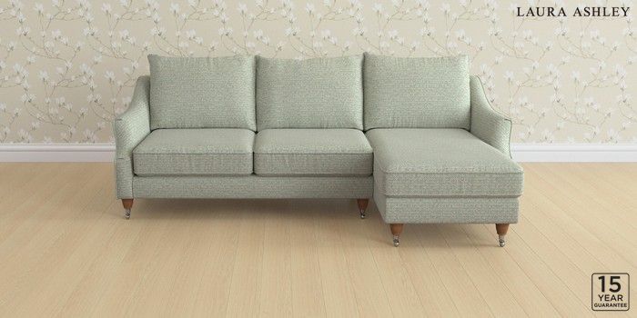 6.12.1 Buy Beverley by Laura Ashley Medium Sofa Chaise - Right Hand Borwick Newport Blue Low Chrome Castor - Teak from the Next UK online shop Click here to use our accessible website