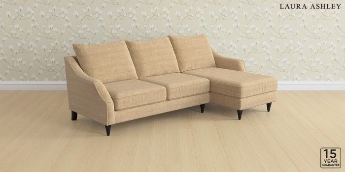 7.2.10 Buy Beverley by Laura Ashley Medium Sofa Chaise - Right Hand Edwin Chenille Gold Natural Low Turned - Black from the Next UK online shop Click here to use our accessible website
