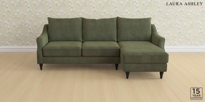 6.12.1 Buy Beverley by Laura Ashley Medium Sofa Chaise - Right Hand Edwin Chenille Hedgerow Green Low Turned - Black from the Next UK online shop Click here to use our accessible website