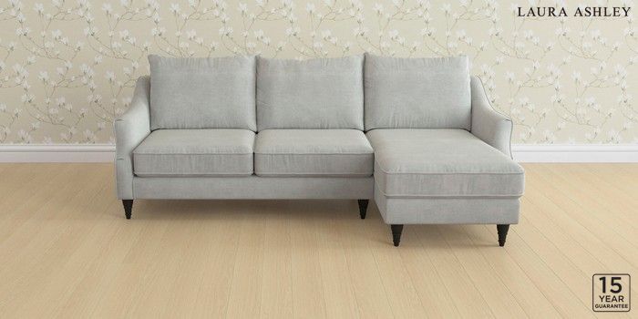 6.12.1 Buy Beverley by Laura Ashley Medium Sofa Chaise - Right Hand Edwin Chenille Silver Grey Low Turned - Black from the Next UK online shop Click here to use our accessible website
