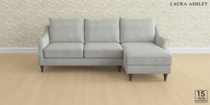 6.12.1 Buy Beverley by Laura Ashley Medium Sofa Chaise - Right Hand Edwin Chenille Silver Grey Low Turned - Chestnut from the Next UK online shop Click here to use our accessible website