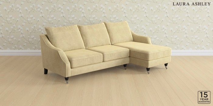 6.12.1 Buy Beverley by Laura Ashley Medium Sofa Chaise - Right Hand Edwin Chenille Truffle Natural Low Chrome Castor - Black from the Next UK online shop Click here to use our accessible website