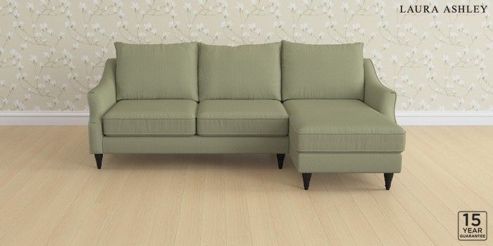 6.12.1 Buy Beverley by Laura Ashley Medium Sofa Chaise - Right Hand Edwin Herringbone Hedgerow Green Low Turned - Black from the Next UK online shop Click here to use our accessible website