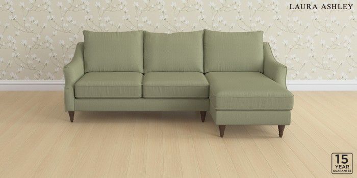 6.12.1 Buy Beverley by Laura Ashley Medium Sofa Chaise - Right Hand Edwin Herringbone Hedgerow Green Low Turned - Chestnut from the Next UK online shop Click here to use our accessible website