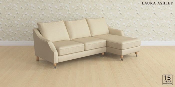 6.12.1 Buy Beverley by Laura Ashley Medium Sofa Chaise - Right Hand Edwin Herringbone Natural Low Chrome Castor - Light Oak from the Next UK online shop Click here to use our accessible website