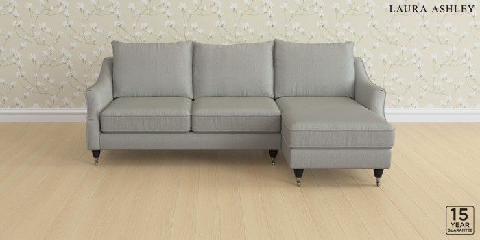 6.12.1 Buy Beverley by Laura Ashley Medium Sofa Chaise - Right Hand Edwin Herringbone Pale Steel Grey Low Chrome Castor - Black from the Next UK online shop Click here to use our accessible website