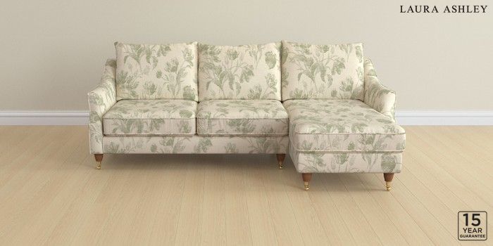 6.12.1 Buy Beverley by Laura Ashley Medium Sofa Chaise - Right Hand Gosford Weave Sage Green Low Brass Castor - Teak from the Next UK online shop Click here to use our accessible website