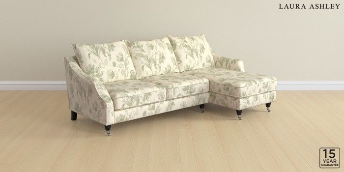 7.3.1 Buy Beverley by Laura Ashley Medium Sofa Chaise - Right Hand Gosford Weave Sage Green Low Chrome Castor - Black from the Next UK online shop Click here to use our accessible website