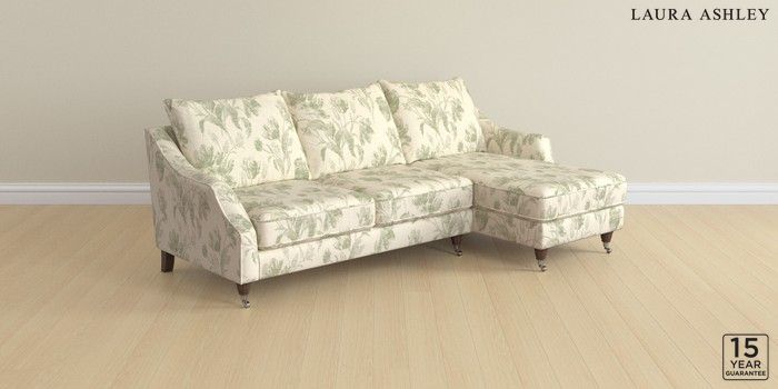 7.3.1 Buy Beverley by Laura Ashley Medium Sofa Chaise - Right Hand Gosford Weave Sage Green Low Chrome Castor - Chestnut from the Next UK online shop Click here to use our accessible website