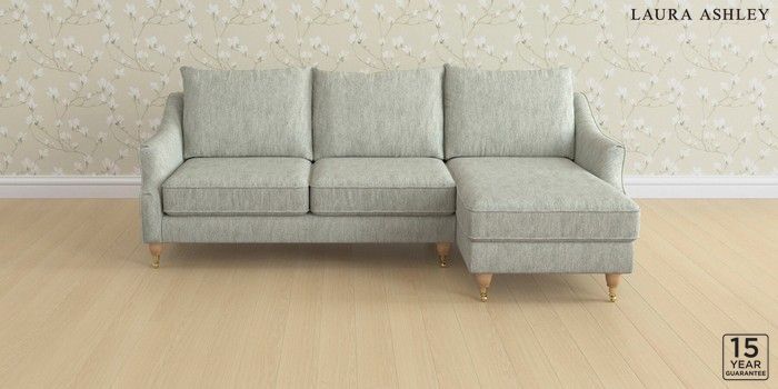 6.12.1 Buy Beverley by Laura Ashley Medium Sofa Chaise - Right Hand Harley Dove Grey Low Brass Castor - Light Oak from the Next UK online shop Click here to use our accessible website