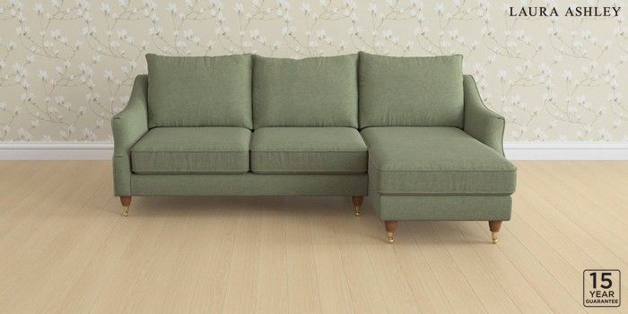 6.12.1 Buy Beverley by Laura Ashley Medium Sofa Chaise - Right Hand Harley Moss Green Low Brass Castor - Teak from the Next UK online shop Click here to use our accessible website