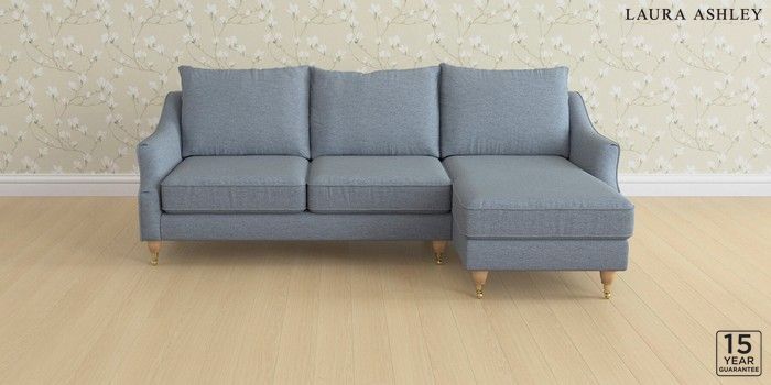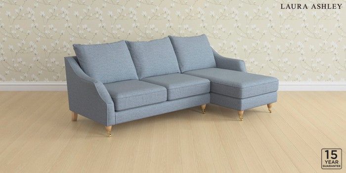 6.12.1 Buy Beverley by Laura Ashley Medium Sofa Chaise - Right Hand Harley Seaspray Blue Low Brass Castor - Light Oak from the Next UK online shop Click here to use our accessible website