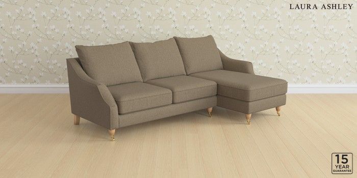 7.3.1 Buy Beverley by Laura Ashley Medium Sofa Chaise - Right Hand Harley Truffle Natural Low Brass Castor - Light Oak from the Next UK online shop Click here to use our accessible website