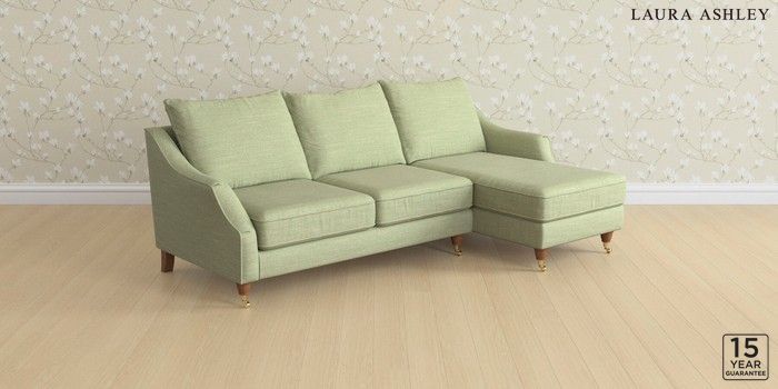 7.2.10 Buy Beverley by Laura Ashley Medium Sofa Chaise - Right Hand Kinsham Hedgerow Green Low Brass Castor - Teak from the Next UK online shop Click here to use our accessible website
