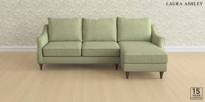 6.12.1 Buy Beverley by Laura Ashley Medium Sofa Chaise - Right Hand Kinsham Hedgerow Green Low Turned - Chestnut from the Next UK online shop Click here to use our accessible website