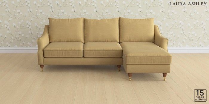 6.12.1 Buy Beverley by Laura Ashley Medium Sofa Chaise - Right Hand Kinsham Ochre Yellow Low Brass Castor - Teak from the Next UK online shop Click here to use our accessible website