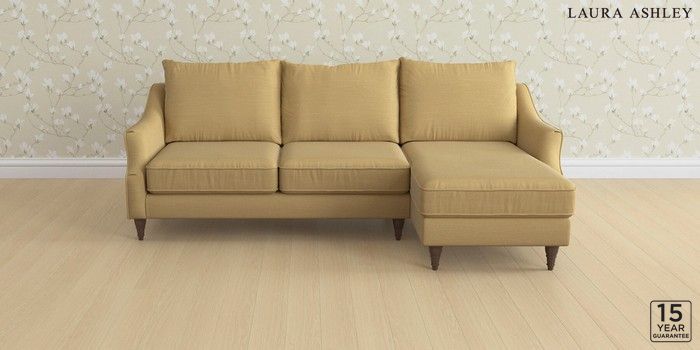 6.12.1 Buy Beverley by Laura Ashley Medium Sofa Chaise - Right Hand Kinsham Ochre Yellow Low Turned - Chestnut from the Next UK online shop Click here to use our accessible website