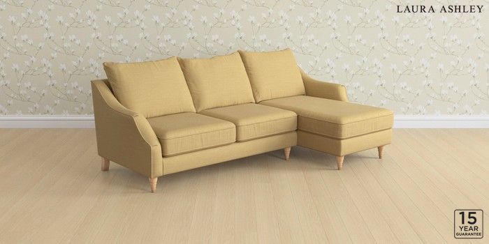 7.2.10 Buy Beverley by Laura Ashley Medium Sofa Chaise - Right Hand Kinsham Ochre Yellow Low Turned - Light Oak from the Next UK online shop Click here to use our accessible website