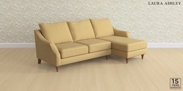7.3.1 Buy Beverley by Laura Ashley Medium Sofa Chaise - Right Hand Kinsham Ochre Yellow Low Turned - Teak from the Next UK online shop Click here to use our accessible website