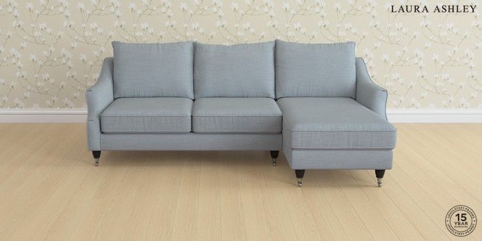 6.12.1 Buy Beverley by Laura Ashley Medium Sofa Chaise - Right Hand Kinsham Seaspray Blue Low Chrome Castor - Black from the Next UK online shop Click here to use our accessible website