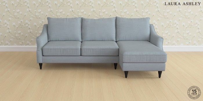 6.12.1 Buy Beverley by Laura Ashley Medium Sofa Chaise - Right Hand Kinsham Seaspray Blue Low Turned - Black from the Next UK online shop Click here to use our accessible website