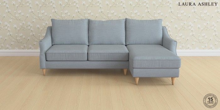 6.12.1 Buy Beverley by Laura Ashley Medium Sofa Chaise - Right Hand Kinsham Seaspray Blue Low Turned - Light Oak from the Next UK online shop Click here to use our accessible website