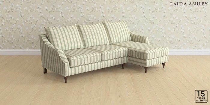 7.2.10 Buy Beverley by Laura Ashley Medium Sofa Chaise - Right Hand Kinsham Stripe Hedgerow Green Low Turned - Chestnut from the Next UK online shop Click here to use our accessible website