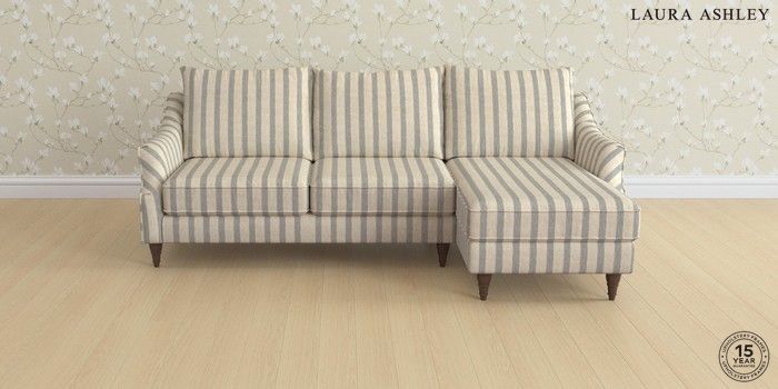 6.12.1 Buy Beverley by Laura Ashley Medium Sofa Chaise - Right Hand Kinsham Stripe Seaspray Blue Low Turned - Chestnut from the Next UK online shop Click here to use our accessible website