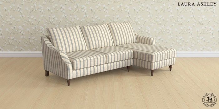 7.2.6 Buy Beverley by Laura Ashley Medium Sofa Chaise - Right Hand Kinsham Stripe Seaspray Blue Low Turned - Chestnut from the Next UK online shop Click here to use our accessible website